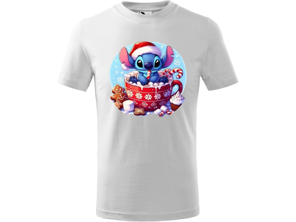 Dětské tričko - Vánoce - Stitch s kafíčkem